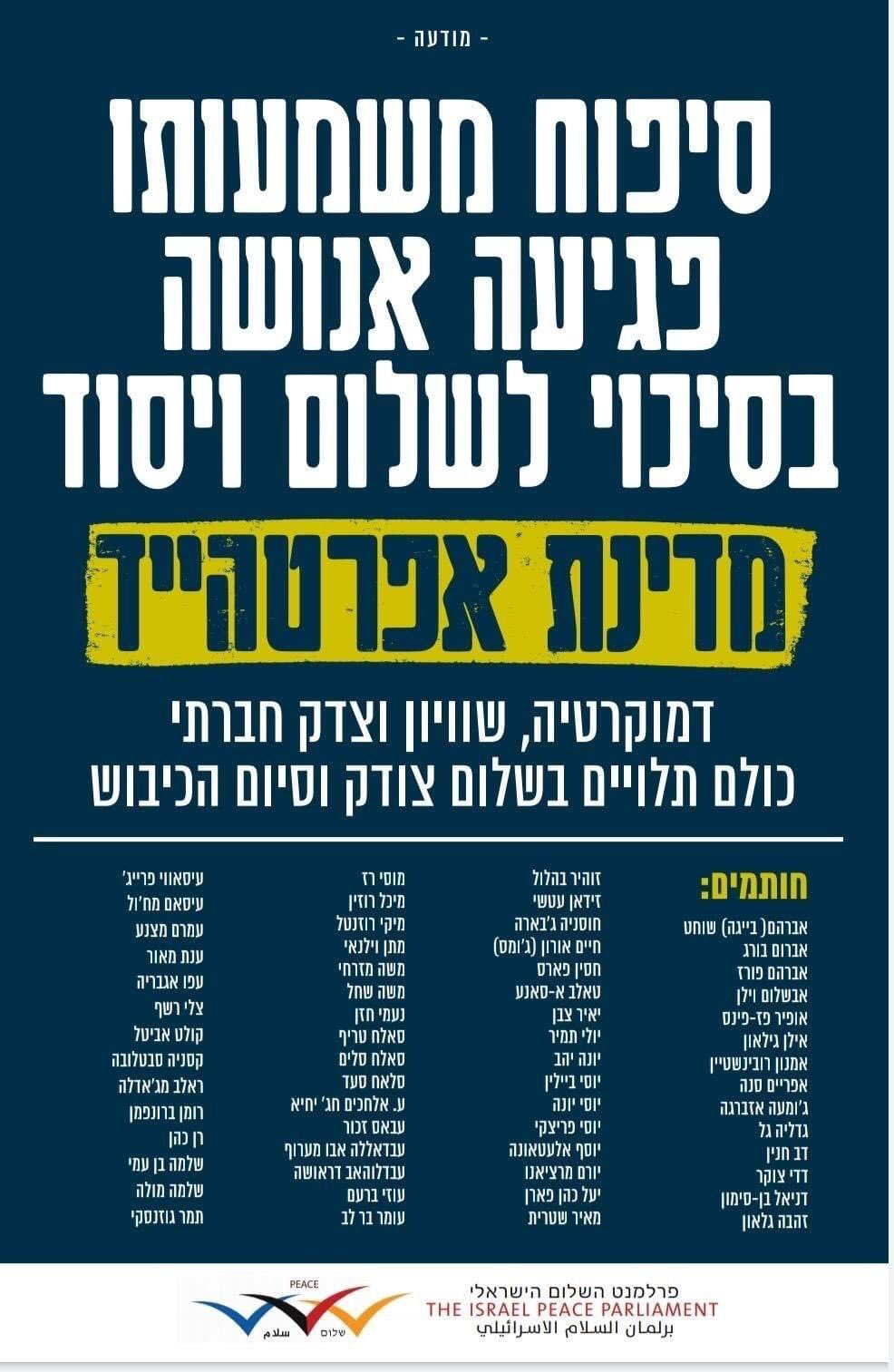 זו לא עמדה פוליטית ואין לה מקום במערכת הפוליטית תמר זנדברג. אבו מאזן דיבר גם הוא בפתח פגישתו עם זנדברג וציין כי פנינו לשלום ואין לנו אופציה אחרת.
